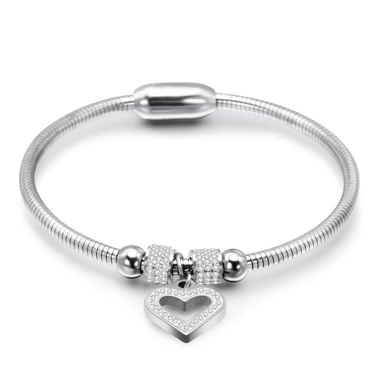 fashionable and simple hollowed-out diamond-encrusted heart-shaped snake chain bracelet