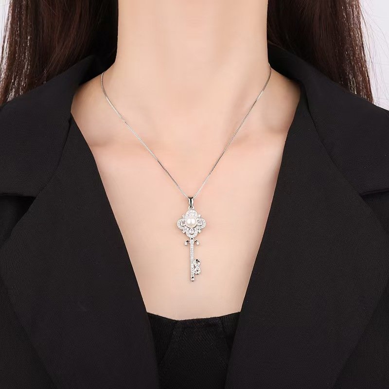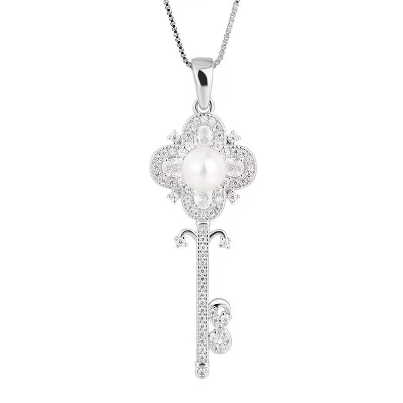 Full diamond key pearl necklace 7.5mm