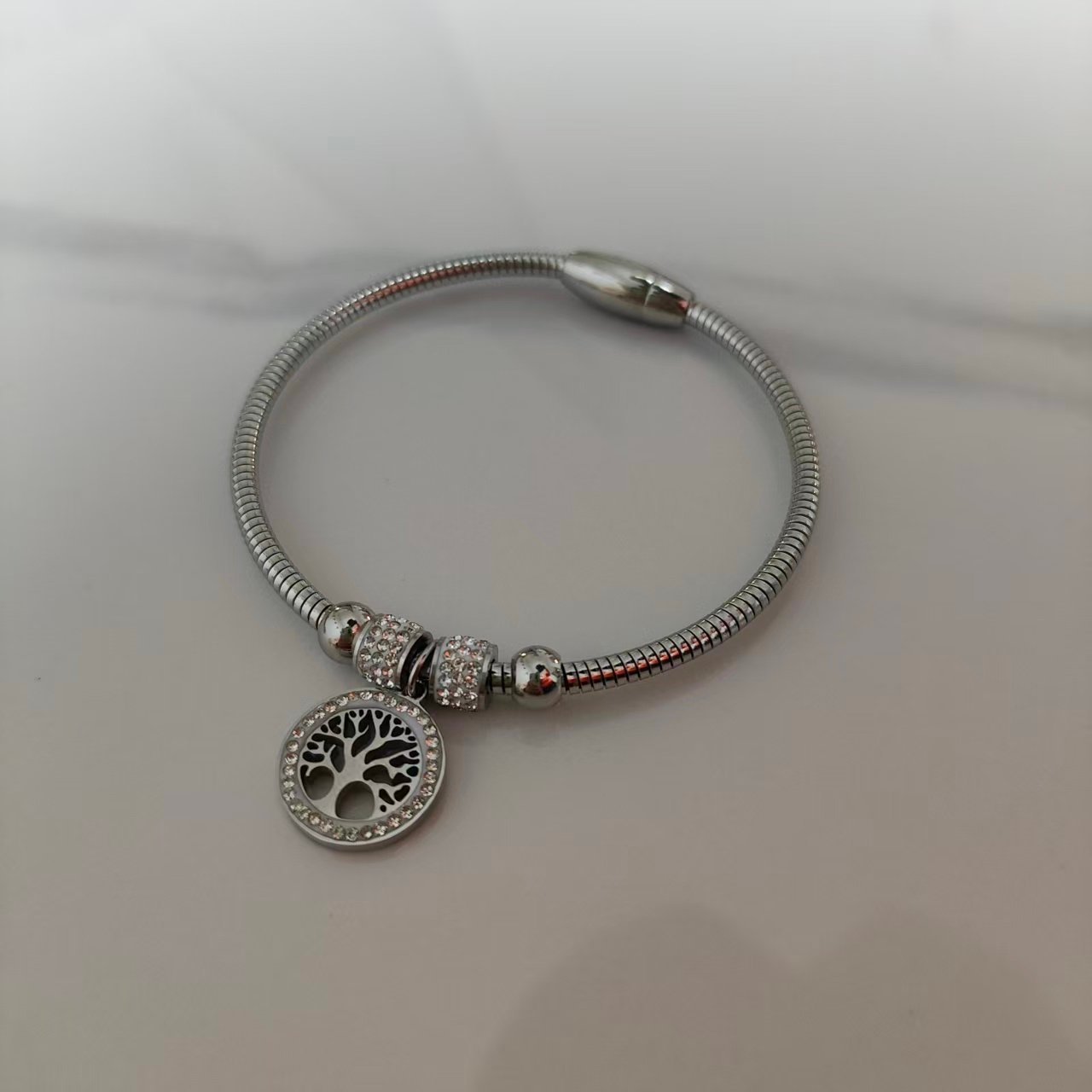 stainless steel Diamond-encrusted tree of life Bangle 3mm